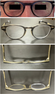 There are ways to improve the wearability of iseikonic spectacles. A small lens size and circular frames help minimize weight differences between the lenses. Aspheric lenses would reduce optical aberrations. Plastic frames can better mask the lens edge than metal or rimless designs. The final spectacles ordered had plastic circular frames with no obvious asymmetry when viewed from the front (see Figure 5). Material, cost, and likelihood for remakes were discussed upfront to set expectations.
